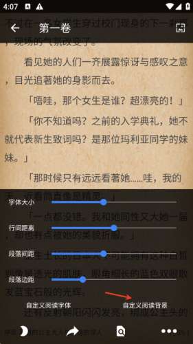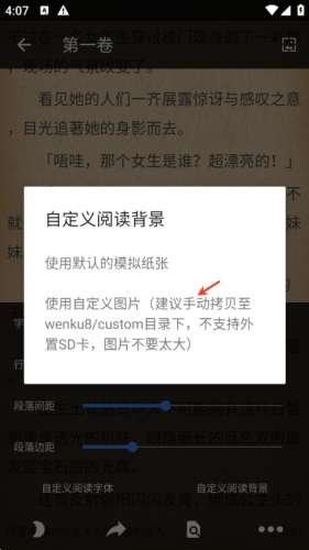 4、选择“自定义图片”,然后从手机相册中挑选自己喜欢的图片作为阅读背景即可。