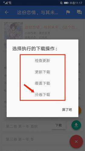 3、进入分卷下载界面,勾选需要下载的内容后,选择右下角【OK】选项就可以下载小说了。