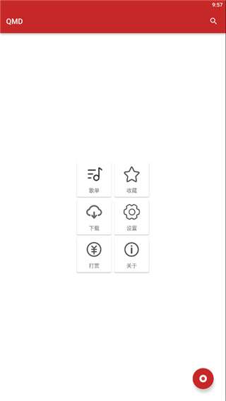 1、首先下载并且打开QMD音乐软件,然后点击右上方的搜索图标;