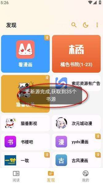 1、进入应用程序后,在主页上选择“发现”,然后单击“获取图书来源”。