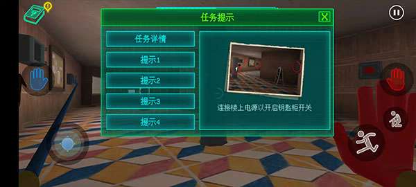 8、当玩家打开卧室的门之后,往左边看会有一个红色的手印,同样的将手套对着相对应的区域即可。
