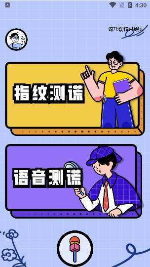 1、启动测谎测试:打开应用后选择测谎模式,录入语音或放置“指纹”进行模拟测谎。