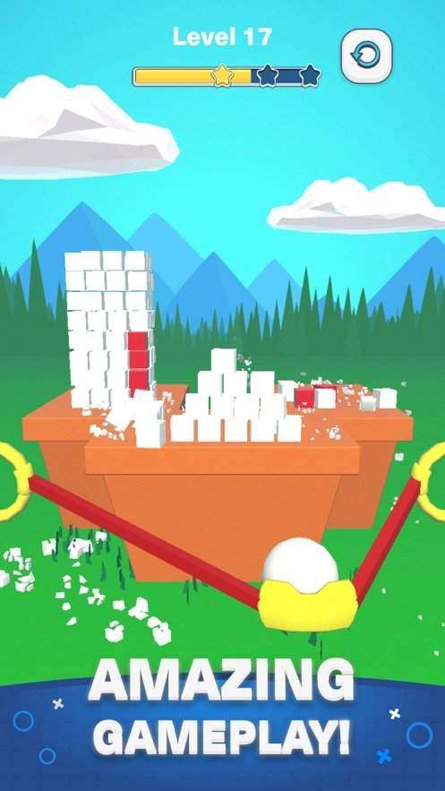 1、游戏的玩法非常的简单,就像是我们小时候拿着这个弹弓去玩一样的;