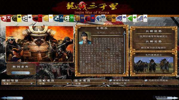 日本:日本划分为三个势力,即丰臣家、德川家以及北条氏,后丰臣秀吉一统日本,发动朝鲜战争。