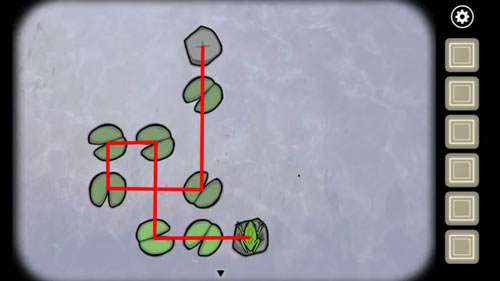 2、进入树林2,调查右侧的水池,将相同形状的物体配对,完成后可以在水里得到第二只青蛙。