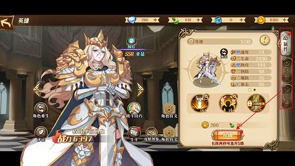 5、通过完成关卡,可以获得大量资源奖励,玩家可以对女神英雄进行培养提升,升级、进阶等,提高女神战力等级。