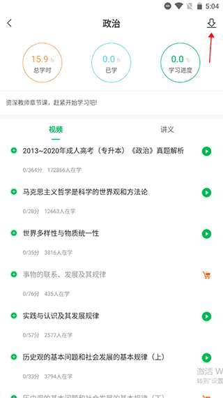 2、打开课程界面右上角的【下载】按钮,点击右侧的绿色下载按钮即可开始下载。