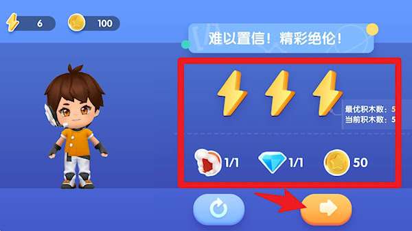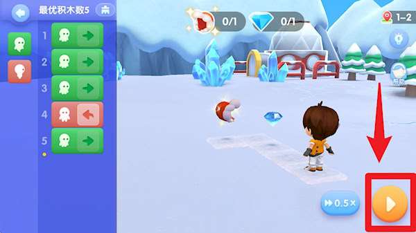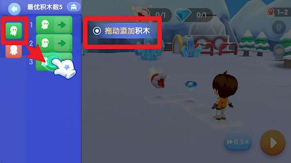 3、根据关卡任务目标,从指令区拖拽积木代码到编辑区,构建完整的行动序列。