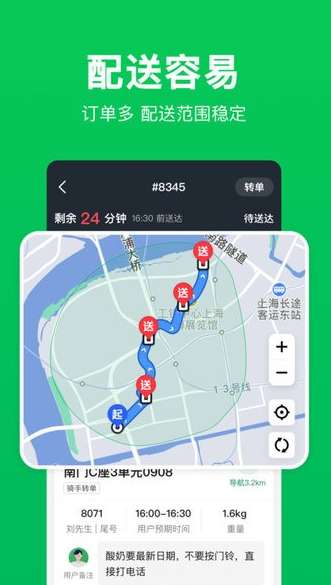 1、为骑手提供更方便和高效的交付经验,获得用户的广泛好评。
