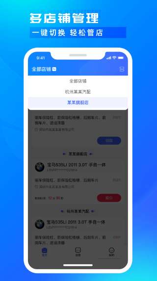 1、多店铺管理,一键切换,轻松管理店铺。