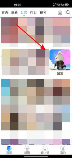首页点击上方的漫画【分类】选项
