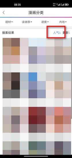 进入该分类后,点击搜索结果排序,【人气】或【更新】