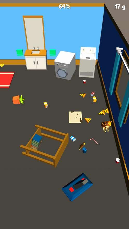 Vacuum Clean Up在这里玩家么参与的挑战就是完成每一个房间的整理工作,在这里完成了后面的任务之后就会新的清理工具可以使用就看大家的喜好了。每一个房间中会有很多新的打理板块等着你来完成,后面的操作大家自己看着完成吧。把每一个家具还有随意乱放的东西摆放整齐,最后的分数就会越高。每一个奖励的金币数量都不一样,之后既可以解锁新的新的清洁工具了。