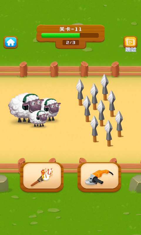 3、关卡内具有铁棒还有不同颜色的物体一旦抽取的铁棒是错误的所有的物品会降落到小羊的头上。