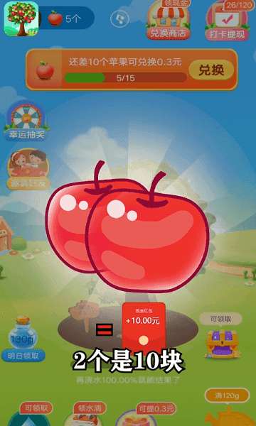 解锁更多的果树来打造完美农场。玩法任务可以获得现金红包奖励,自由进行兑现。