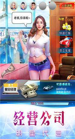 《商业传奇最新版》是一款唯美的商战游戏,在这里你可以经营各类商业,获得各种豪车豪宅,更有性感秘书与你一同成长!宣传公司可以邀请明星代言,更快的积累名气!逐渐的建立繁华的商业都市!快来下载体验吧!