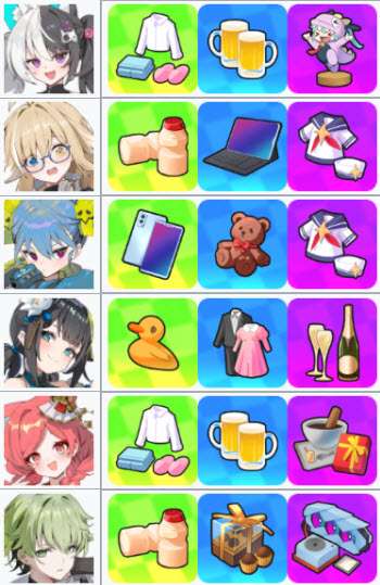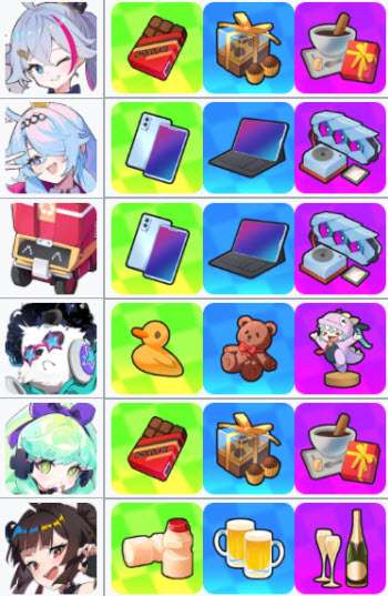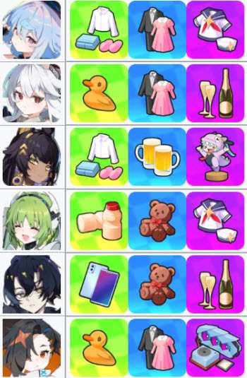 2、角色礼物偏好