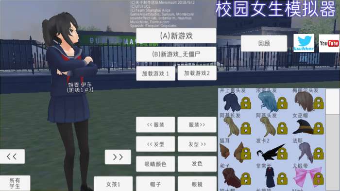玩法:最普通的校园生活模式,没有僵尸。按照课表上课、吃饭、参加社团活动、自由加入或退出社团,与学生和老师互动、攻略对象并恋爱,还可以爬山、玩水、开车等悠闲娱乐。