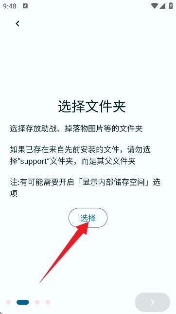 4、请勿选择"support"文件夹,而是其父文件夹注:有可能需要开启「显示内部储存空间」选项。