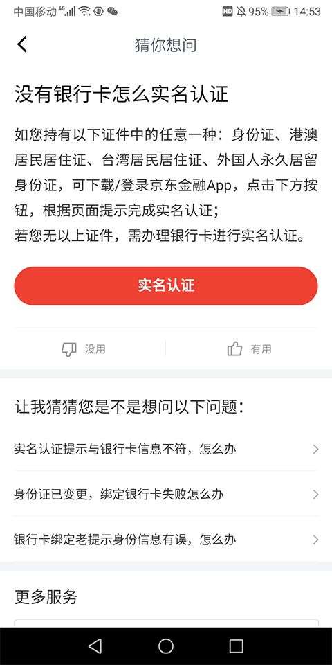 5、在实名认证时根据官方客服页面显示需要银行卡进行实名认证,认证通过后便可将提现的钱进入银行卡账号中。