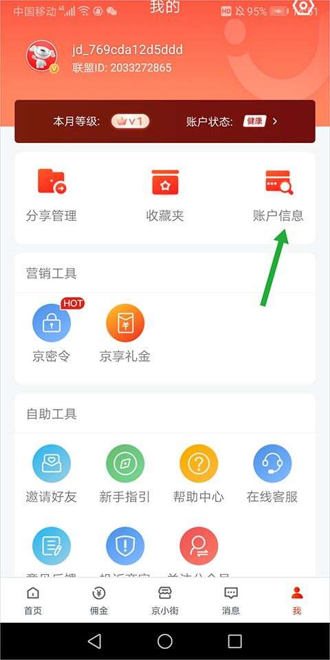 1、用户可以打开并登录京粉app,前往【佣金】页面中点击【提现】后。