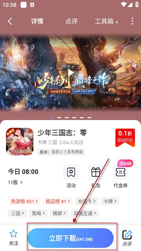 4、在详情页点击“立即下载”,等待安装完成后即可启动游戏。