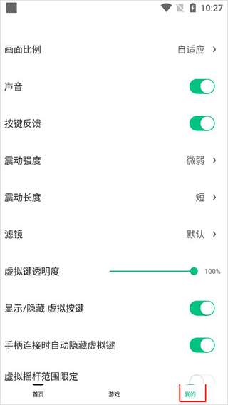 2、自定义调节画面比例、声音、震动强度、显示或隐藏虚拟按键等等。