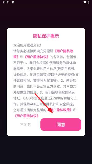 2、点击同意隐私提示。