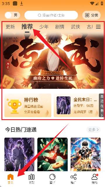 3、然后进入到软件首页中,如图所示,这里能看到诸多高热作品推荐。