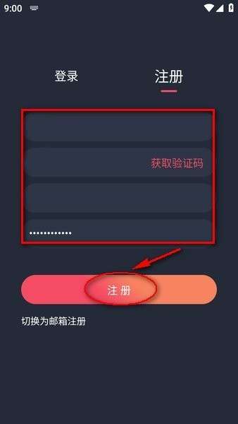 3、来到注册界面后,填写手机号、验证码、昵称,设置密码,点击“注册”;也可以使用邮箱注册。
