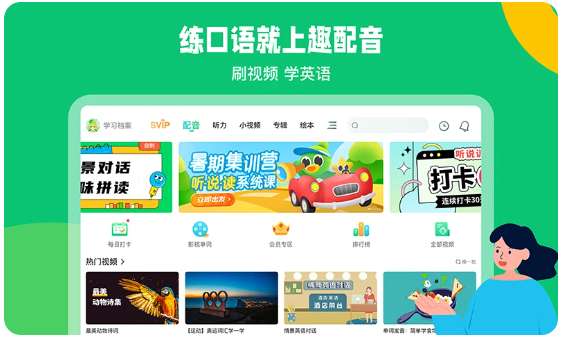 1、各种形式 用户可以通过短视频、唱歌、热门电影配音等方式逐步提高自己的口语。