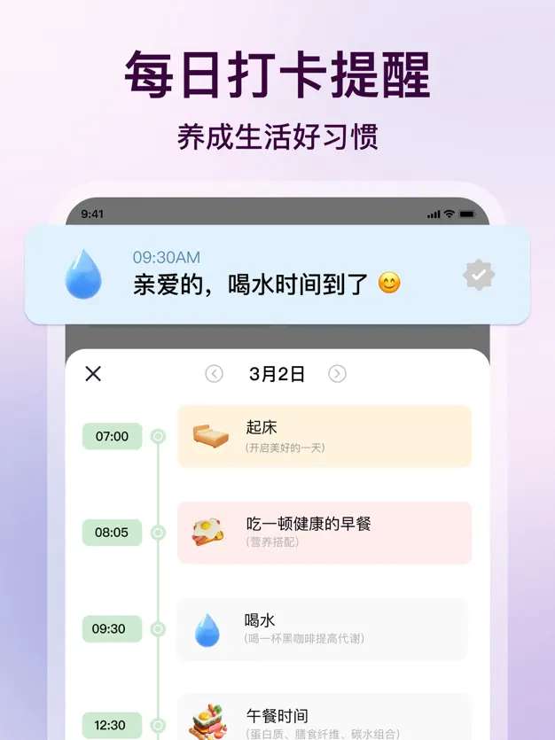 3、提醒功能:支持设置个性化提醒,确保用户不忘记日常任务,增强习惯养成的可持续性。
