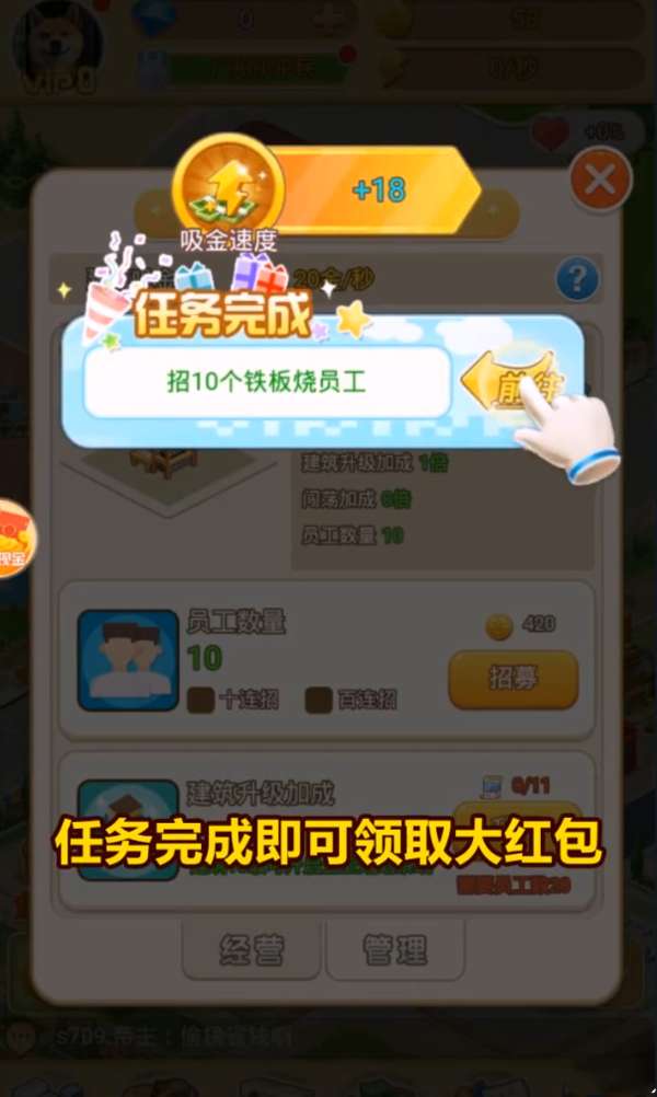 梦幻酒店红包版是一款非常好玩的酒店模拟游戏,在这里玩家扮演的是一名酒店经理,需要合理的经营酒店,在这里就能获得收益,游戏中通过获取收益之后还能让你赢取红包哦,赶紧来下载吧。