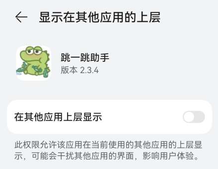 1、首先我们需要先打开跳一跳辅助神器,开启软件的悬浮窗权限。