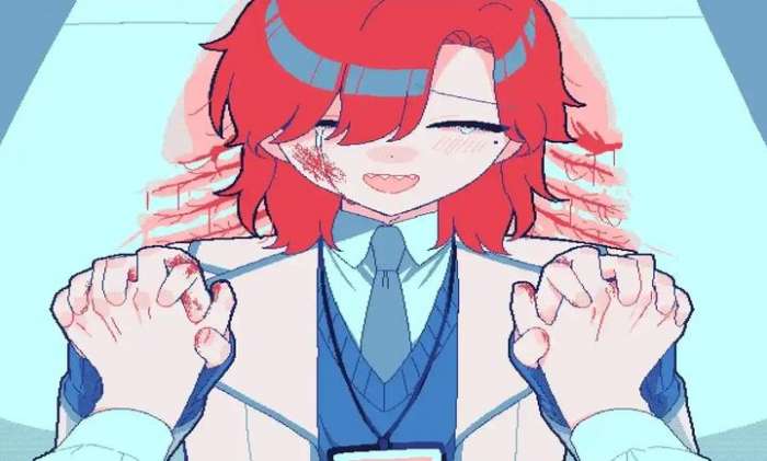 1、【结局1】:在选择不强行将【十二村结】的脸和冷冻库的门分开后,【口无茶毘】会陷入疯狂撞死在他面前。
