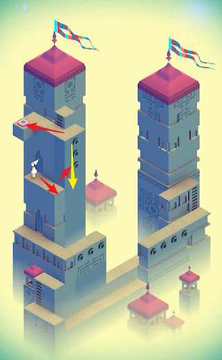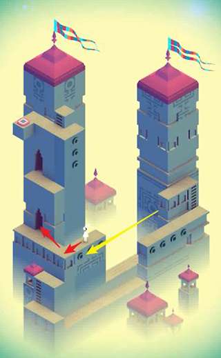 1、本章是纪念碑谷第一章,本章玩法非常简单仅有有个操作,但这是整个纪念碑谷的核心玩法。