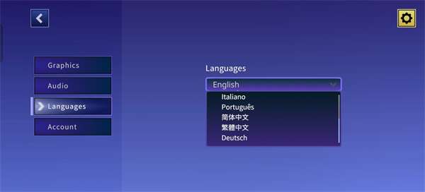 1、首次进入游戏后,建议优先将语言调整为简体中文以提升体验。操作方式很简单,直接点击游戏主界面右上角的齿轮图标(设置按钮)即可进入设置页面。