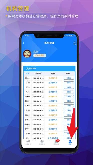 4、"我的"板块可实时查看所有机构成员信息,并可对其角色和权限进行在线管理操作。