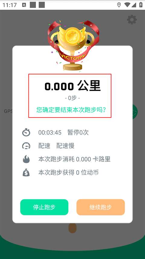 5、点击“结束”后,您可以看到您完成的总公里数,以及所花费的时间和速度。