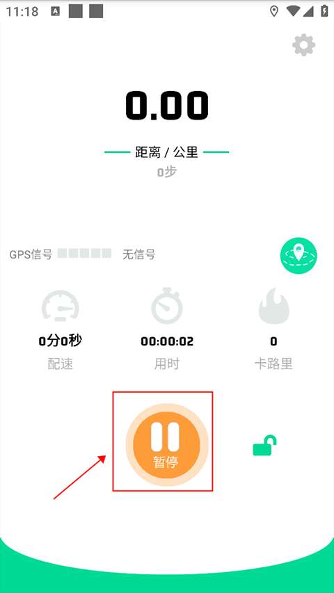 3、单击后,您可以开始运行。跑步时,还可以观察千米、步数、速度、时间和卡路里等数据。完成运行后,单击暂停按钮。