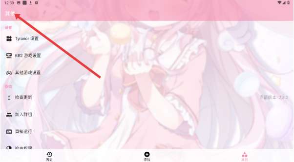 4、点击其他板块,可进入设置界面,查看Tyranor设置、KR2游戏设置等,还可进行检查更新、加入群组等操作,提升应用使用体验。