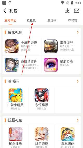 5、在抢礼包界面中找到自己所玩的游戏并点击进入领取。