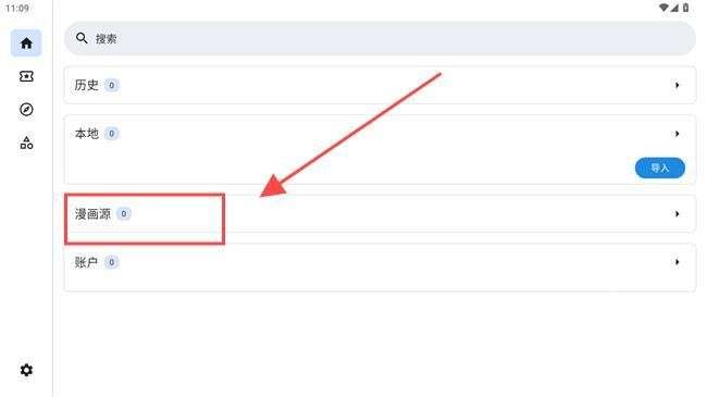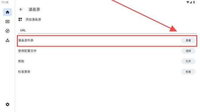 4、如箭头位置所示,用户需要选择漫画列表来进行查看,自己来添加漫画源。