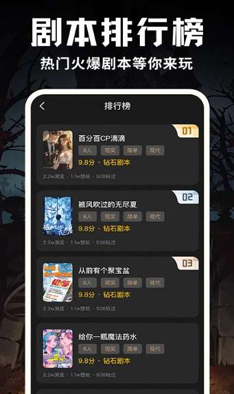2、庞大的方案 为用户准备了海量的剧本,可以获得平台提供的各种剧本资料,满足不同推理爱好者的需求。