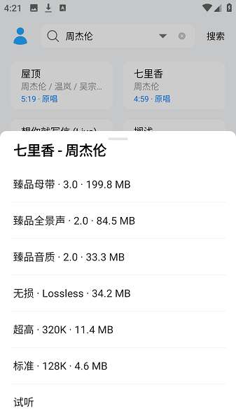 2、每一个歌曲都有不同的音质可以选择。