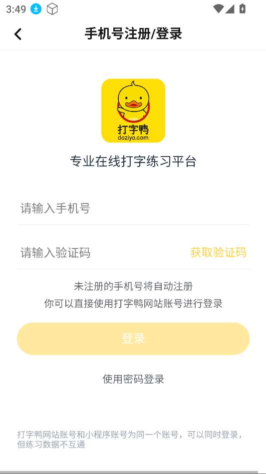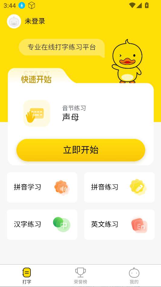 1、下载安装打字鸭,打开软甲注册登录。