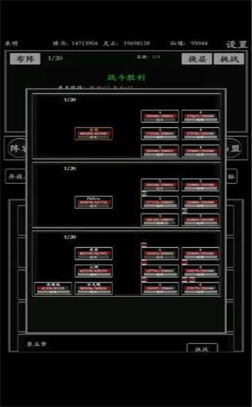 打开阵容界面,点击人物详细,渡劫升级,点到不能点,这时候主角是结丹境界,元婴之前都不推荐用渡劫石“严重怀疑渡劫概率,90%都能失败,我这是有多非呜呜呜”太非的话升到结丹,到坊市买渡劫石