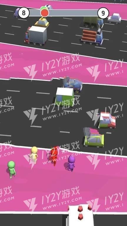 公路赛跑3D游戏中玩家操控一个橡皮小人进行速度竞速,场景就在马路上,玩家的任务就是要做第一个走过马路的人,而且是在不被车撞的情况下,玩家才算胜利,没有任何多余的因素介入,胜负全靠自己的技术,什么时候该走,什么时候不该走,玩家要想清楚,有兴趣的小伙伴来下载一起比赛吧!