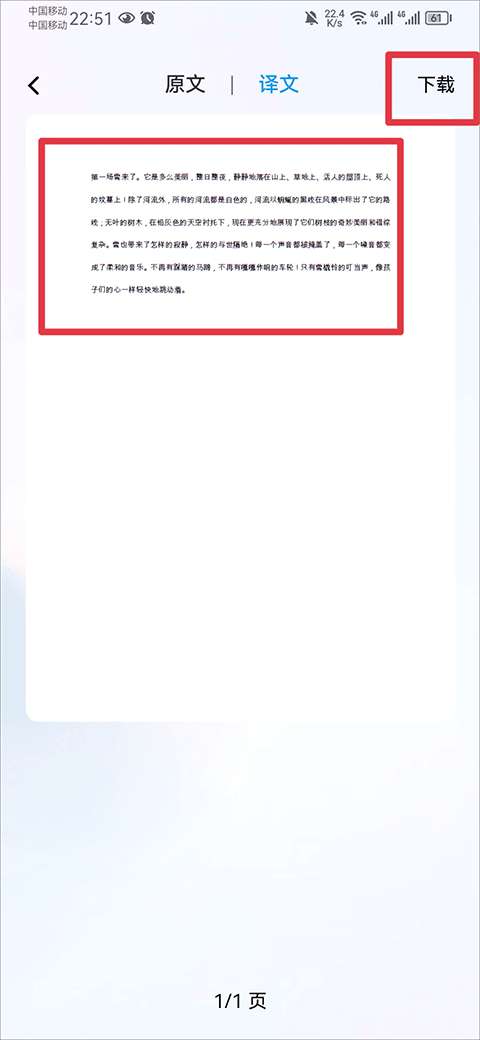 5、最后系统就会为你自动翻译成译文啦,点击按键还可以将译文下来