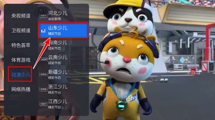 2、在这里小编以点击动漫少儿,山东少儿为例。